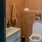 Badrumsfaciliteterna på boendet inkluderar också en separat toalett och en dusch. I badrummen finns också badlakan, handdukar och tofflor för din bekvämlighet.